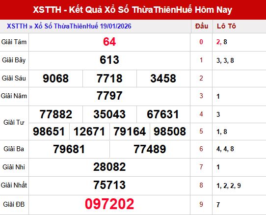 Phân tích kết quả xổ số Thừa Thiên Huế ngày 19/1/2026
